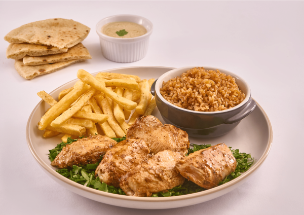 طبق ميكس جريل كبير عبارة عن تشكيله من الكفته المشويه والكباب وشيش الطاووق تقدم مع الارز وأختيارك من السلطات وعيش الساخن