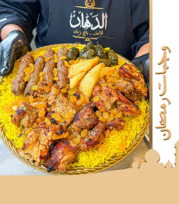 ربع كيلو كفتة + ربع كيلو شيش طاووق + نص فرخة شيش + أرز بسمتي + 3 ممبار + 3 سمبوسك + 6 ورق عنب — السعر قبل الخصم 950 جنيه، بعد خصم 15% 810