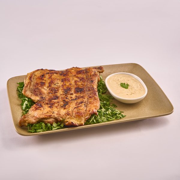 نص فرخة مشوية تقدم مع أختيارك من السلطات وعيش