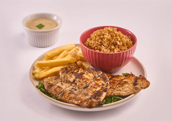 وجبة صدور مشوية مع مكرونة أو ارز + بطاطس + سلطة + عيش