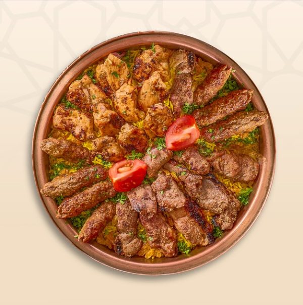 نص كيلو كباب وكفتة + ربع كيلو شيش طاووق + أرز بسمتي + 3 سمبوسك + 3 ممبار + 6 ورق عنب + 3 سلطة + 3 عيش — السعر قبل الخصم 1010 جنيه، بعد خصم 15% 860 جنيه.