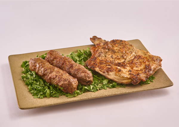 طبق ميكس جريل صغير عبارة عن تشكيله من الكفته المشويه والكباب وشيش الطاووق تقدم مع الارز وأختيارك من السلطات وعيش الساخن