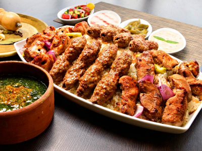 وجبة سوبر فاميلى ميكس 10 قطع كباب و 10 قطع كفتة و 10 قطع شيش مع ارز بالشعرية فاميلى وطاجن ملوخية مع سلطات وخبز